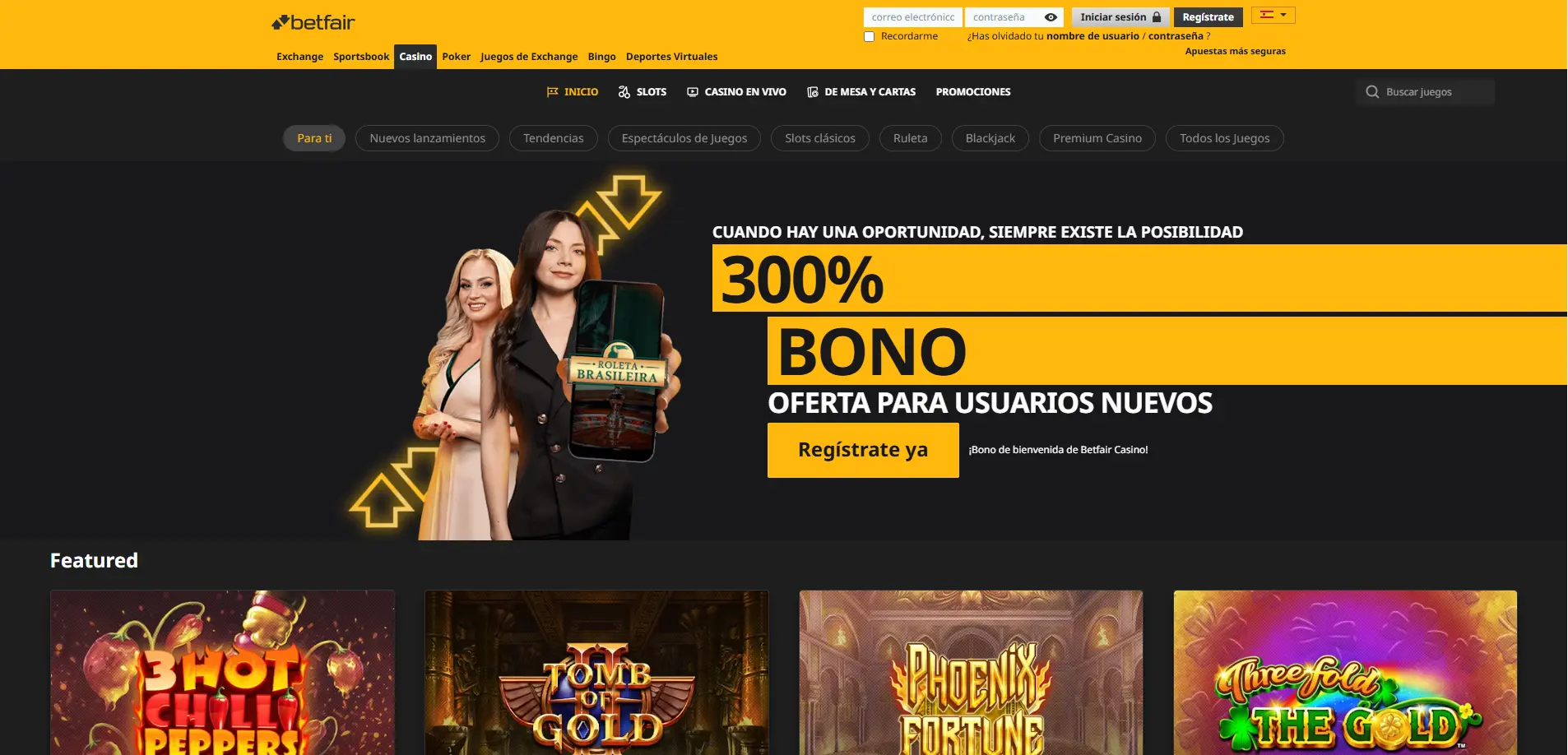 Los nuevos jugadores chilenos son recibidos en Betfair Casino con una oferta excepcional. Se trata de un impresionante Bono Betfair del 300% sobre el primer depósito hasta un máximo de $300 USD, acompañado de 35 tiradas gratis para disfrutar en una selección de las mejores tragamonedas.