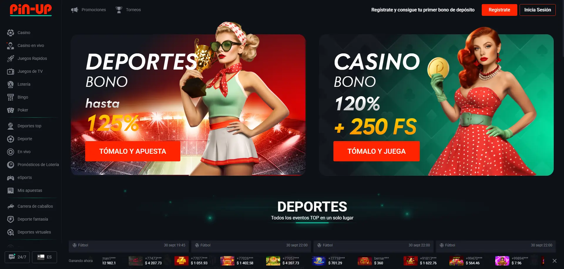 Pin-up recibe a sus nuevos jugadores chilenos con un atractivo paquete de bienvenida. Al realizar su primer depósito, los usuarios pueden optar a un bono del 120% si depositan dentro de la primera hora tras el registro, o del 100% si lo hacen más tarde. El bono de bienvenida Pin-up puede alcanzar un monto máximo de hasta $5.000.000 CLP.